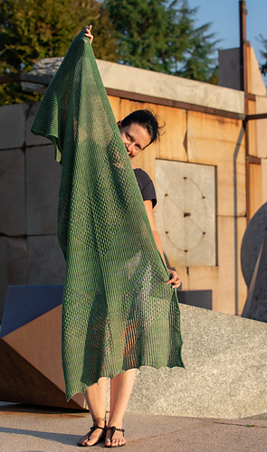 “Zig Zag Honeycombs” is a classic rectangular wrap and is knitted flat from one short side to the other. The main patterns are a mix of honeycombs which were created through left and right crosses and twisted stitches.The wrap is worked with two threads at the same time (fingering + lace) but can also be knitted with one thread in fingering or sport weight.