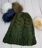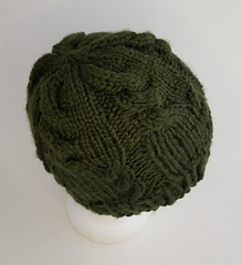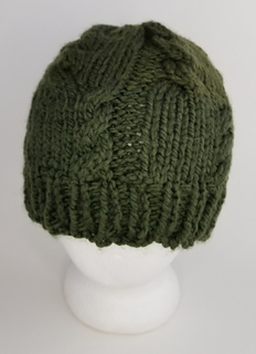 Simple cable repeat makes this beanie quick to work up. It is also versatile and easily made bigger or smaller by adding repeat rounds or cable sections.