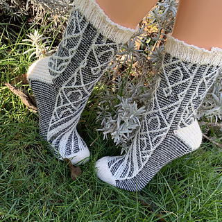 Zoey can be made to any leg height - ankle, mid-calf or even knee high. Yarn amounts given below are for a large size mid-calf sock. Less is required for ankles socks and more for knee socks.