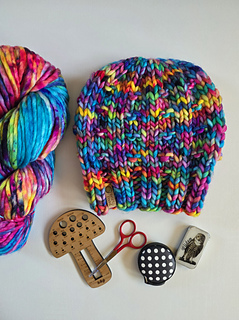 A super simple but well fitting beanie that knits up quick. Use any super bulky yarn to work up a great chunky little hat with a bit of texture.