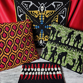 Digital chart and instructions in English (US Terms) with detailed photos for creating 4 horror movie inspired patterns in mosaic crochet. These patterns uses the overlay mosaic crochet technique.