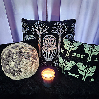 Digital chart and instructions in English (US Terms) with detailed photos for creating 3 nocturnal inspired patterns in mosaic crochet. These patterns uses the overlay mosaic crochet technique.