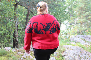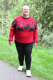 Looking at the FOs, I’m starting to wonder. I’m knitting the largest size. There is no picture of such sweater. The largest size has an even number of repeats in the yoke. This means that the tail end of two cats will be in the middle of the front and two laying cats will be under the boobs. Not exactly the vision I’m after.