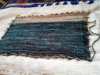 Tried to swatch with KP Harmony. Needles were too grabby with this yarn. Swatching with ChiaoGoo.