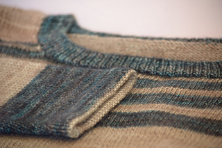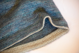 -Neck edging: Folded hem, 1" k1p1, ~1”