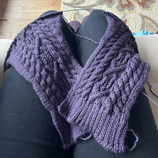 - Modifying shoulder stepped bind offs to be short rows; placing on waste yarn; 3 needle bind off to seam front and back panels