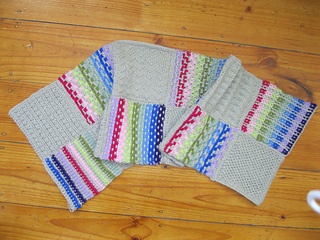 Did this one all on 3.75 needles. Followed pattern for 7 colours instead of 6 for length. ended with 2 purl rows and cast off in purl after Row 2.