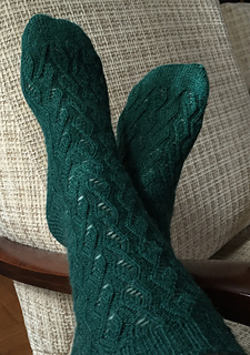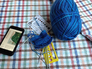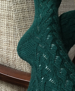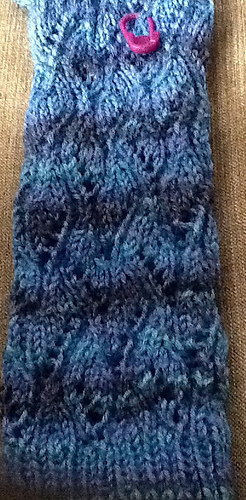 I didn’t realize how strong the striping in this blue yarn was until I knitted it up. Decided it doesn’t complement the lace stitch pattern so frogging the sock to reknit with a solid green.
