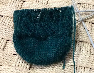 After 4 repeats on the leg, I switched to 2.75mm needles and did 1.5 more repeats, finishing on row 8, before starting 20 rows 2/2 ribbing on 2.5mm. EZ sewn cast-off.
