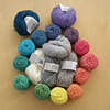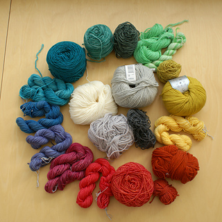 This is a project for our wee one. There will be cardigans, socks, hats… Mehdi and I dyed some merino yarn from my stash especially for the baby projects and when I start a new one, we choose the color combo together.