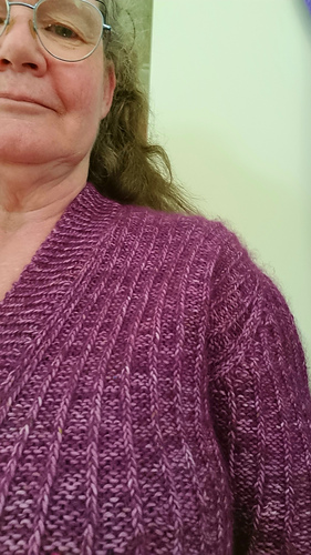 Added 2 decreases in ribbing close to shoulder seam, to narrow the v-neck shaping.