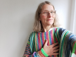 Was inpired by this sweater Kiko made in 2025 » in which she uses a pattern of Martina Umemura. I will try to reverse engineer it, using the measurements of my FF Backward sweaters and using sockyarn (as allways).