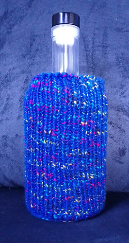 Using up stash - unlabeled acrylic - blue with multi-coloured contrast strand.