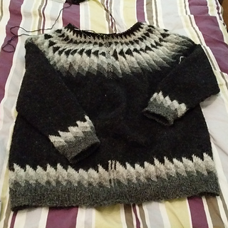 21/8 Bound off and wove in all the ends. Tomorrow I’ll graft the underarms and give it a bath.