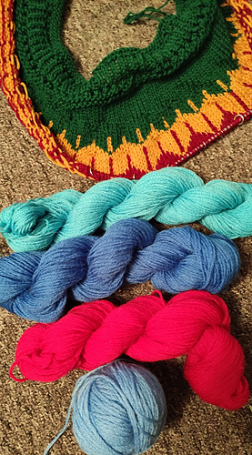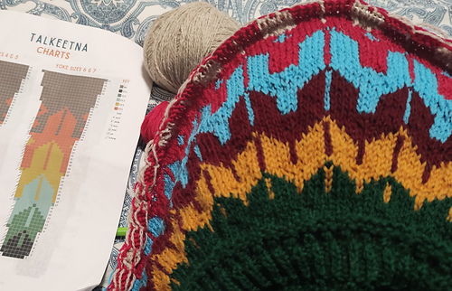 I have varying amounts of vintage pure wool fingering-weight yarns that I acquired from a local Facebook seller, and am going to pull some of them together for the Talkeetna. I’ve weighed them all but the metreage is just an estimate, so I’m crossing my fingers that it all works out!