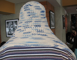 The toque probably began with a pattern, but I have no idea from which book or leaflet. I do know it was years before I got online, so it’s not from an online source. It’s a thermal rib, not just flat ribbing.