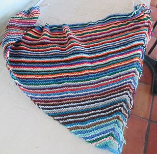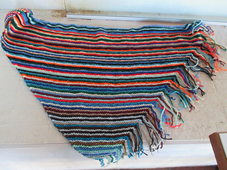 It’s in the washing machine now. After it comes out of the dryer, I’ll pack it and a pair of sharp scissors to take it with me to Sunday Morning Knitting. I like the long counter there for trimming fringes. (See me in action in the 3rd photo down at: https://www.ravelry.com/projects/JessicaJean/narrow-step-...)