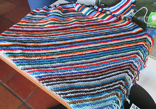 This is a fun knit and is eating through my scraps and odd-balls. The thickness of the yarn varies from heavy worsted through sport weight, and it doesn’t seem to make any difference.