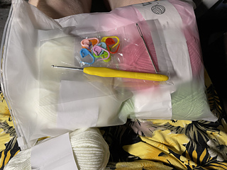 2025-09-16 rosebuds with yarn doubled; single crochet between single strand worked over the carried strand.