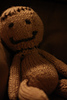This little fella just kind of came to life on his own, starting from the top. His face is duplicate stitch, his arms and hands are icord. His head is all one piece, knitted in the round, with his body picked up at the neck, and stitches split off for his icord arms. His legs were knit flat and stitched on. My Little Big Planet fanboys were very pleased with this little guy. Sackboy two, for my older son, is on the needles. This completed one belongs to my second son, Patrick. He calls him “Sacktrick”.
