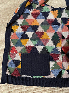 Pockets are on same tension (7) on 44 stitches (2 either side of the stitches on waste yarn). I hung the stitches from the TOP edge of the pocket, and knitted 90 rows then waste yarn.