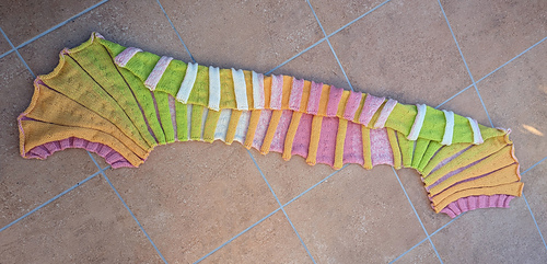 I will probably knit as long as the yarn lasts. I have calculated that there are two full arcs, possibly one more that has been started.