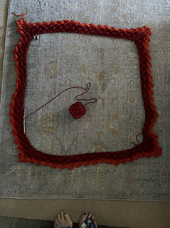 Coming along nicely. Confident of no twists. Beginning to look more like a square outline than a mile-long looped ramen noodle.