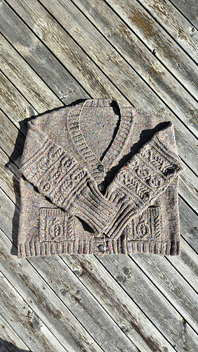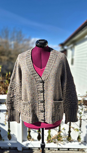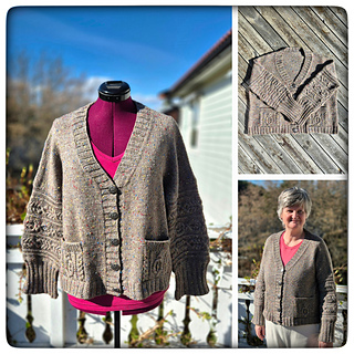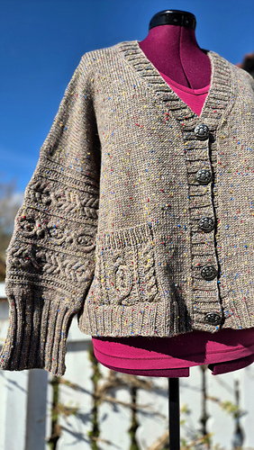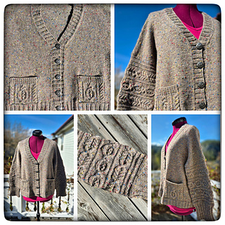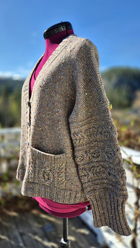 I love the design of this cardigan, with bold cabled sleeves and added pockets. The sleeve construction is also very interesting.