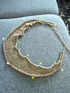After working the fronts down to the armhole, my gauge got tighter. I washed the upper cardigan to check the measurements before considering if I should go up to a 4 mm needle (I’m using a 3.75 mm needle per now).