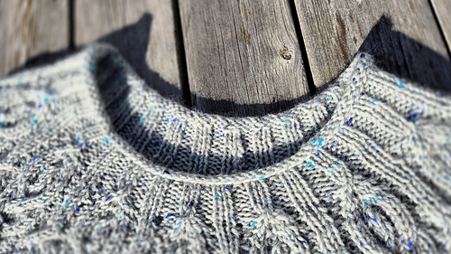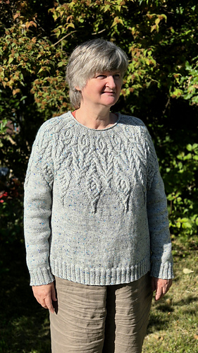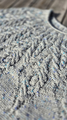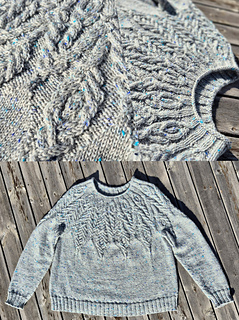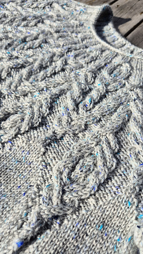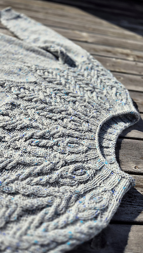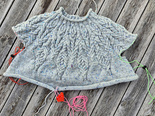 All my modifications are noted on my project page and discussed in the test thread. The most important is that I worked decreases below the cables at the center of chart B (16 sts decreased for body and 6 for sleeves).