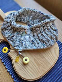 - Smaller needles: Neck: 3.25 mm, Lykke interchangeable. 3.0 mm Addi metal needles for sleeve and body ribbing.