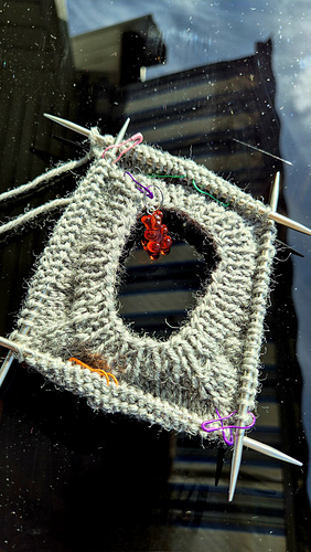 - Used for start of neck: 3.0 mm DPNs, metal needle by KnitPro.