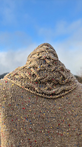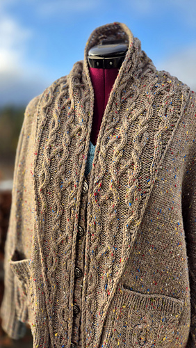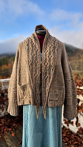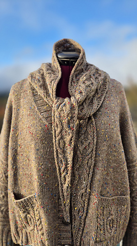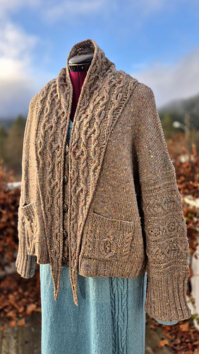 Another test for Irina. A stunning cabled shawl which does match my Annemarie Cardigan.