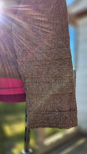 (8) 50 g, used for rest of 1st sleeve (53 g used total for 1st sleeve), 42 g left after 1st sleeve - used for 2nd sleeve, used up before last reverse stockinette section.