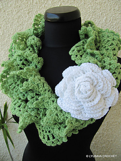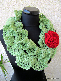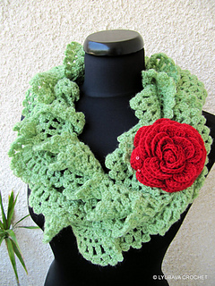 notebook > projects > Green Ruffle Lace Scarf With Red Rose