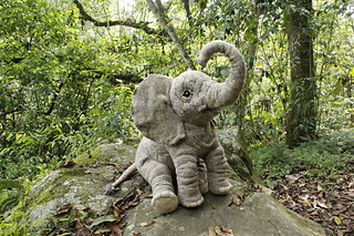 elefante realizado en aguja circular con las tecnicas de acorte ,montado magico