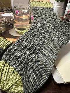 Das hab ich anfangs so gestrickt und nach der Ferse hab ich jeweils 5 Runden gestrickt. Ich finde, dass das Muster so noch schöner heraus kommt