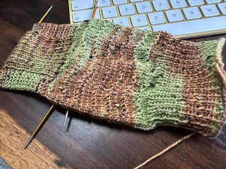 Nach dem 1/1 Bündchen habe ich 1 Reihe rechte M. gestrickt.