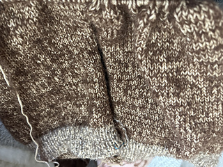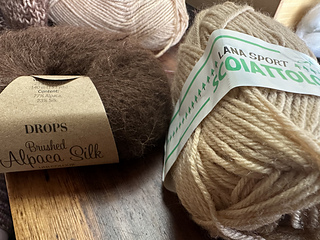 Für das Bündchen hab ich die Lana-Wolle mit der Regia-Softy kombiniert. Für den Körperteil die Alpaca Silk von Drops