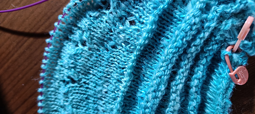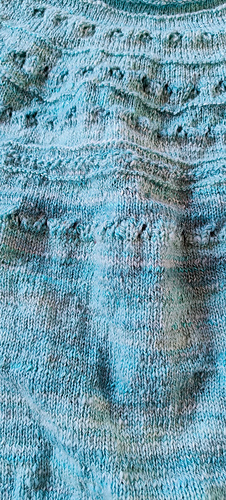 It is done and I love it. The sweater has this springy, elastic quality, that is inherently coming from handspun yarn. It still needs a bath and blocking.