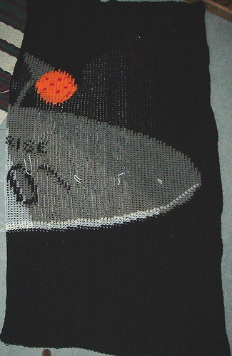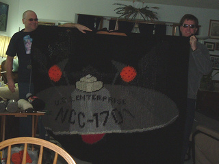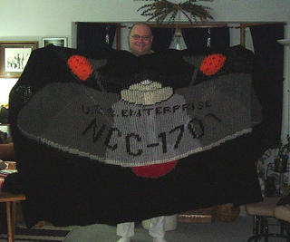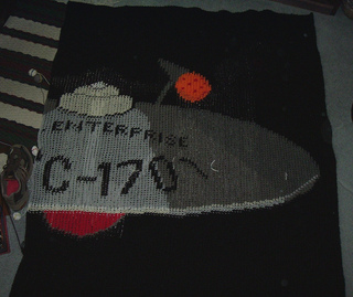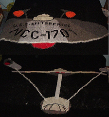 April 15: Donated the afghan to a silent auction to benefit Big Brothers/Big Sisters. The (original) Enterprise Graphghan goes out the door for the last time. Live long & prosper.