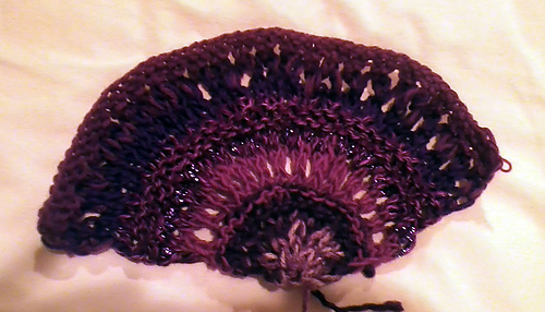 Scraps of yarn were used to make this 1/2 circle motif, using the instructions in Jane Thronley’s Inner Circles Guide.