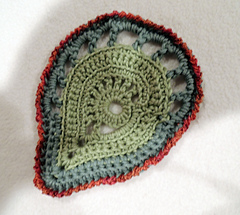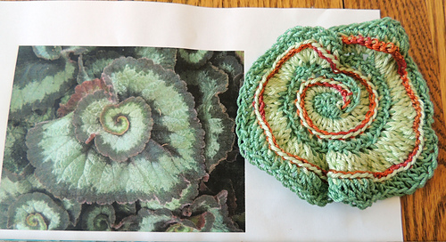 Week 6: Knitted Paisley and coleus leaf spiral by me.