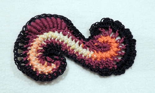 Week 8: Knitted Paisley, crochet bird spiral by Ria