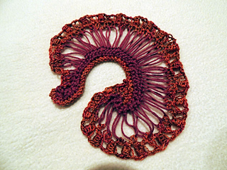 Photos are in reverse order with a few other photos included. The top photo is using the RPL cord and a crochet drop stitch technique to form this paisley.