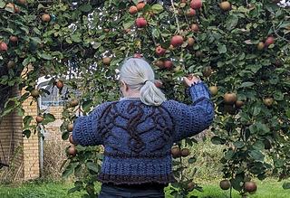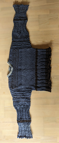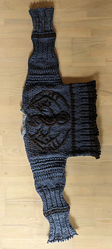 Knitted a torso tube (with extra stitches for steeking), the dragon is in floating cable with the worst of the brown yarn, finished with Pico in 1 ply.