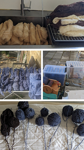 Next step I had decided to try coloring as part of the washing process, and went with ashford indigo. Let it cool overnight, put it through the machine spin cycle and it was dry that evening.