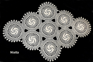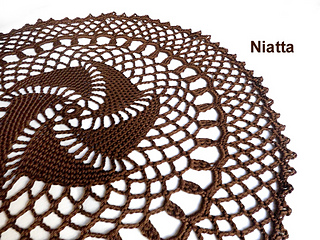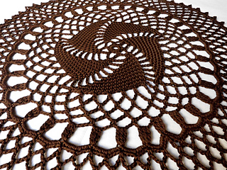 Handmade brown lace doily in 100% cotton. Original design from an heirloom doily (22” long, 15” wide)