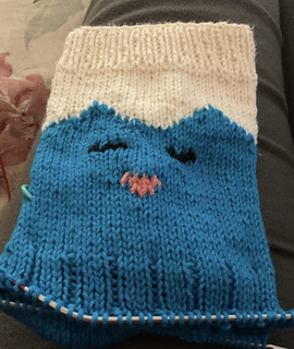 I did 5 rounds in white after the ribbing, then started the chart (two more rounds of white). This time I wanted the ears to be more pointy, so I left just 4 white stitches between each ear & 3 white on each end (altered round 25). I did the eyes on round 19 instead of 20 & the mouth on rounds 12 & 11 instead of 13 & 12.
