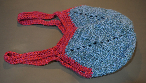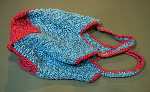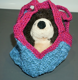 This is intended as a gift for a toddler granddaughter to have her own bag. Doubling up the yarn to make it thicker.